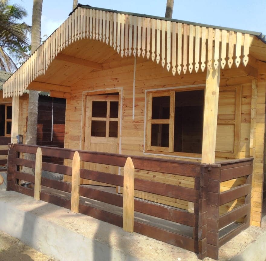 We specialize in building wooden cottages. The wood we use is pine wood which is treated so it is resistant to bugs and wood termites. This increases the life span, durability and strength of the wood. We use sleek based paint on the exterior of the wood to protect it from UV rays and make it weather proof.